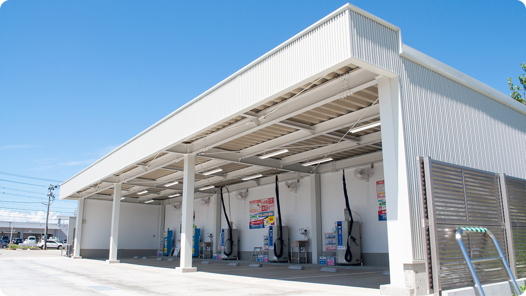そんな想いから、最新のドライブスルー洗車機と全天候型の屋根付き拭き上げ場を拡充しています。