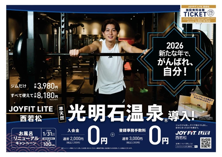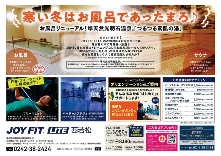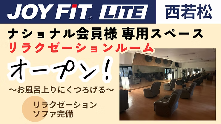 【JOYFIT LITE西若松】準天然 光明石温泉®&リラクゼーションスペース新登場!【ナショナル会員様】